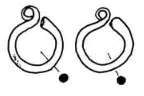 b) se široce roztepanou kličkou (nitranský typ a durynské). Esovitá klička je roztepána na 2-3 násobek síly drátu. U durynských je klička někdy vícenásobná.